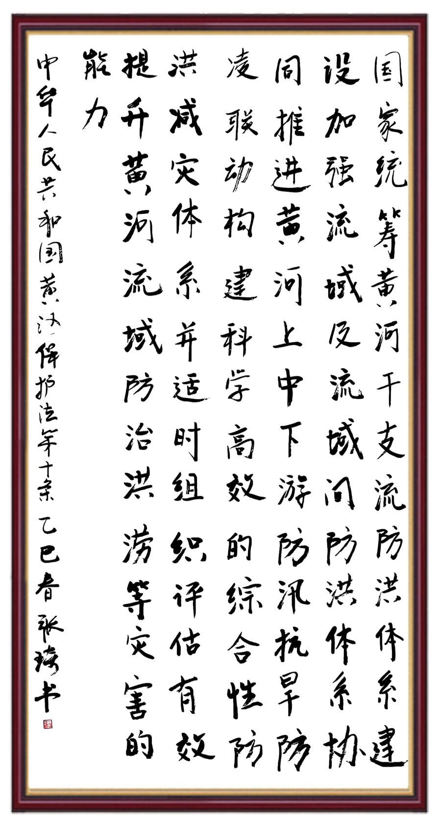 黃河寧,天下平。黃河是中華民族的發(fā)源地和搖籃,保護黃河是事關(guān)中華民族偉大復(fù)興的千秋大計?!吨腥A人民共和國黃河保護法》為推進水資源節(jié)約集約利用、保護傳承弘揚黃河文化、推動黃河流域生態(tài)保護和高質(zhì)量發(fā)展提供了有力法治保障。繼書寫《中華人民共和國民法典》《中華人民共和國憲法》《中華人民共和國澳門特別行政區(qū)基本法》《中華人民共和國香港特別行政區(qū)基本法》《中華人民共和國國旗法》《中華人民共和國國徽法》《中華人民共和國國歌法》《中華人民共和國法官法》等法律法規(guī)之后,法制日報社聯(lián)合沿黃九省(區(qū))司法廳、書法家協(xié)會,將筆端對準《中華人民共和國黃河保護法》。
