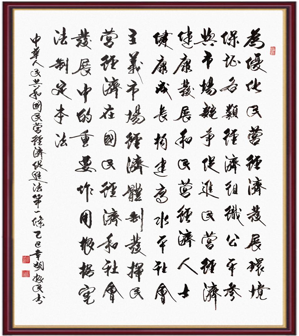 《中華人民共和國民營經濟促進法》自今年5月20日起施行。作為我國首部專門關于民營經濟發(fā)展的基礎性法律,民營經濟促進法將支持和保障民營經濟發(fā)展的法律制度融入中國特色社會主義法律體系,具有重大的法治意義,為促進民營經濟持續(xù)、健康、高質量發(fā)展提供了堅實的法治保障。為更好地學習、宣傳、貫徹這部法律,法治日報社聯(lián)合司法部普法與依法治理局,開展“‘書·法’系列活動之書寫《中華人民共和國民營經濟促進法》”活動。