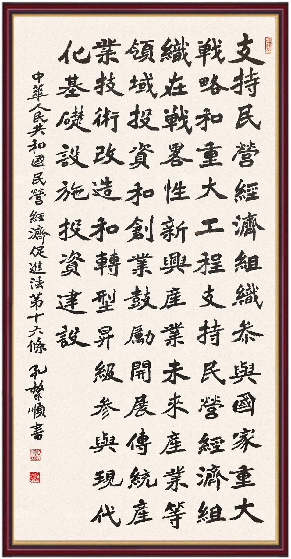 《中華人民共和國民營經(jīng)濟(jì)促進(jìn)法》自今年5月20日起施行。作為我國首部專門關(guān)于民營經(jīng)濟(jì)發(fā)展的基礎(chǔ)性法律,民營經(jīng)濟(jì)促進(jìn)法將支持和保障民營經(jīng)濟(jì)發(fā)展的法律制度融入中國特色社會(huì)主義法律體系,具有重大的法治意義,為促進(jìn)民營經(jīng)濟(jì)持續(xù)、健康、高質(zhì)量發(fā)展提供了堅(jiān)實(shí)的法治保障。為更好地學(xué)習(xí)、宣傳、貫徹這部法律,法治日報(bào)社聯(lián)合司法部普法與依法治理局,開展“‘書·法’系列活動(dòng)之書寫《中華人民共和國民營經(jīng)濟(jì)促進(jìn)法》”活動(dòng)。