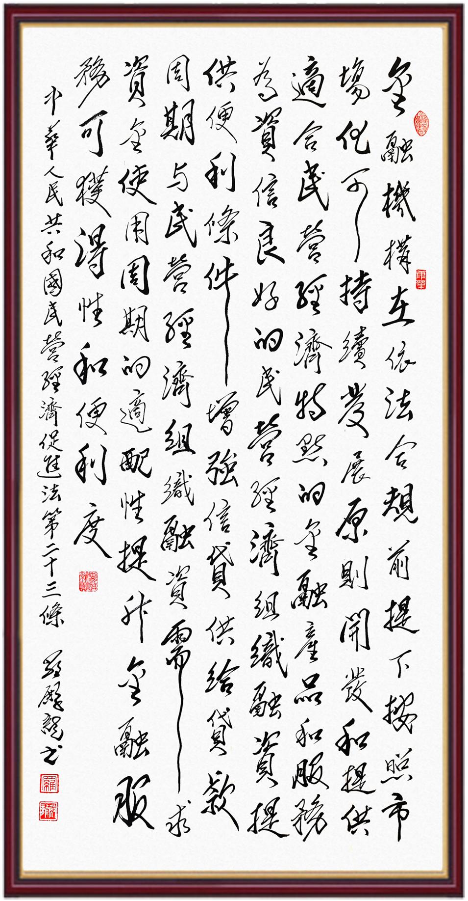 《中華人民共和國民營經(jīng)濟(jì)促進(jìn)法》自今年5月20日起施行。作為我國首部專門關(guān)于民營經(jīng)濟(jì)發(fā)展的基礎(chǔ)性法律,民營經(jīng)濟(jì)促進(jìn)法將支持和保障民營經(jīng)濟(jì)發(fā)展的法律制度融入中國特色社會主義法律體系,具有重大的法治意義,為促進(jìn)民營經(jīng)濟(jì)持續(xù)、健康、高質(zhì)量發(fā)展提供了堅(jiān)實(shí)的法治保障。為更好地學(xué)習(xí)、宣傳、貫徹這部法律,法治日報(bào)社聯(lián)合司法部普法與依法治理局,開展“‘書·法’系列活動(dòng)之書寫《中華人民共和國民營經(jīng)濟(jì)促進(jìn)法》”活動(dòng)。