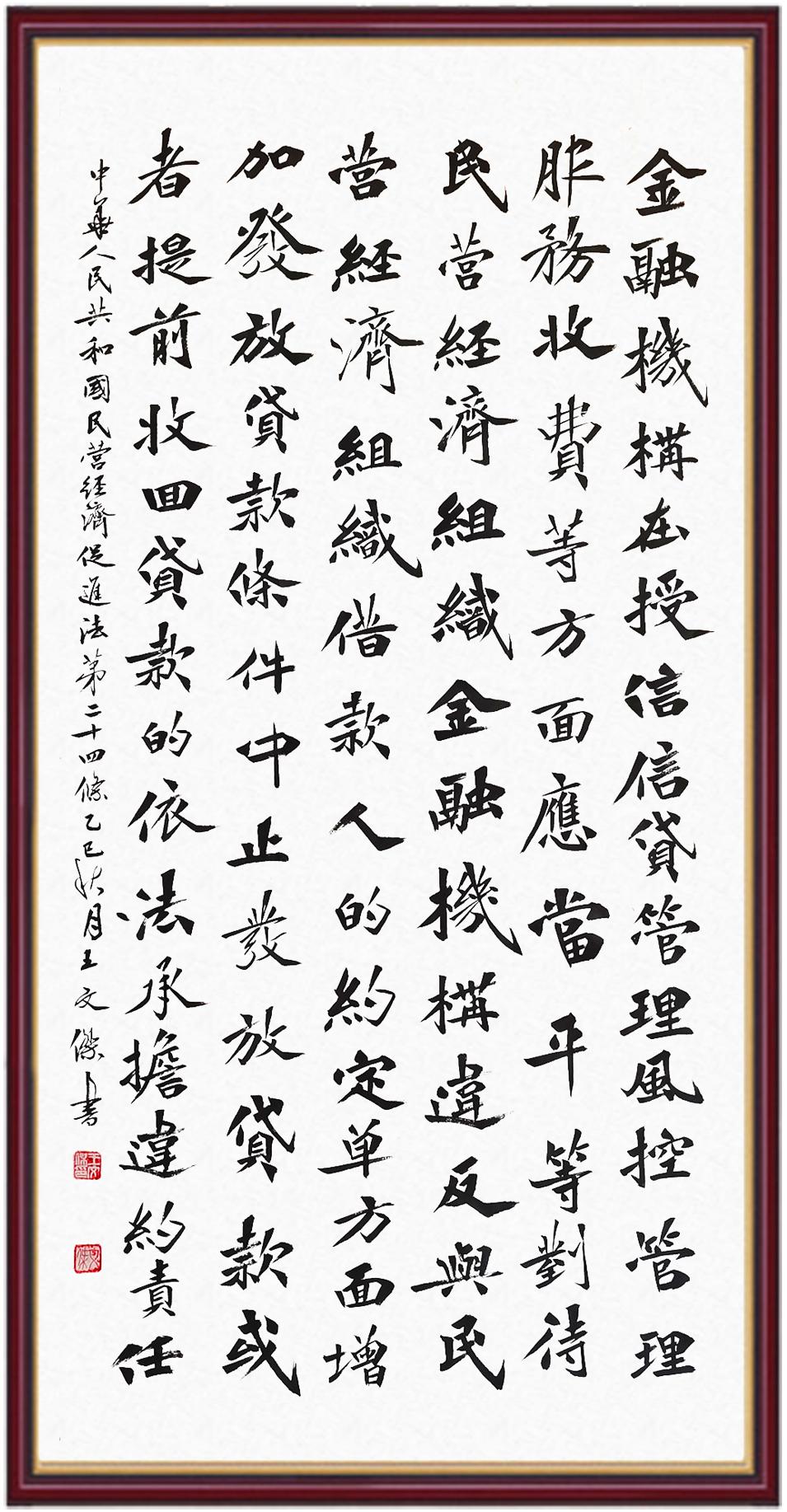 《中華人民共和國民營經(jīng)濟促進(jìn)法》自今年5月20日起施行。作為我國首部專門關(guān)于民營經(jīng)濟發(fā)展的基礎(chǔ)性法律,民營經(jīng)濟促進(jìn)法將支持和保障民營經(jīng)濟發(fā)展的法律制度融入中國特色社會主義法律體系,具有重大的法治意義,為促進(jìn)民營經(jīng)濟持續(xù)、健康、高質(zhì)量發(fā)展提供了堅實的法治保障。為更好地學(xué)習(xí)、宣傳、貫徹這部法律,法治日報社聯(lián)合司法部普法與依法治理局,開展“‘書·法’系列活動之書寫《中華人民共和國民營經(jīng)濟促進(jìn)法》”活動。