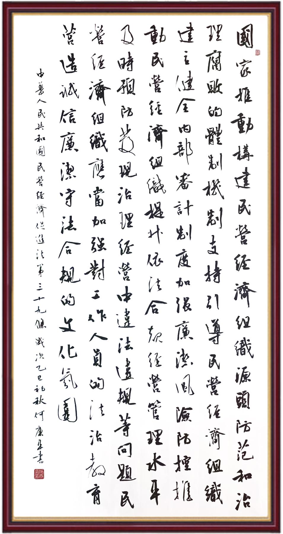 《中華人民共和國民營經(jīng)濟促進法》自今年5月20日起施行。作為我國首部專門關于民營經(jīng)濟發(fā)展的基礎性法律,民營經(jīng)濟促進法將支持和保障民營經(jīng)濟發(fā)展的法律制度融入中國特色社會主義法律體系,具有重大的法治意義,為促進民營經(jīng)濟持續(xù)、健康、高質(zhì)量發(fā)展提供了堅實的法治保障。為更好地學習、宣傳、貫徹這部法律,法治日報社聯(lián)合司法部普法與依法治理局,開展“‘書·法’系列活動之書寫《中華人民共和國民營經(jīng)濟促進法》”活動。