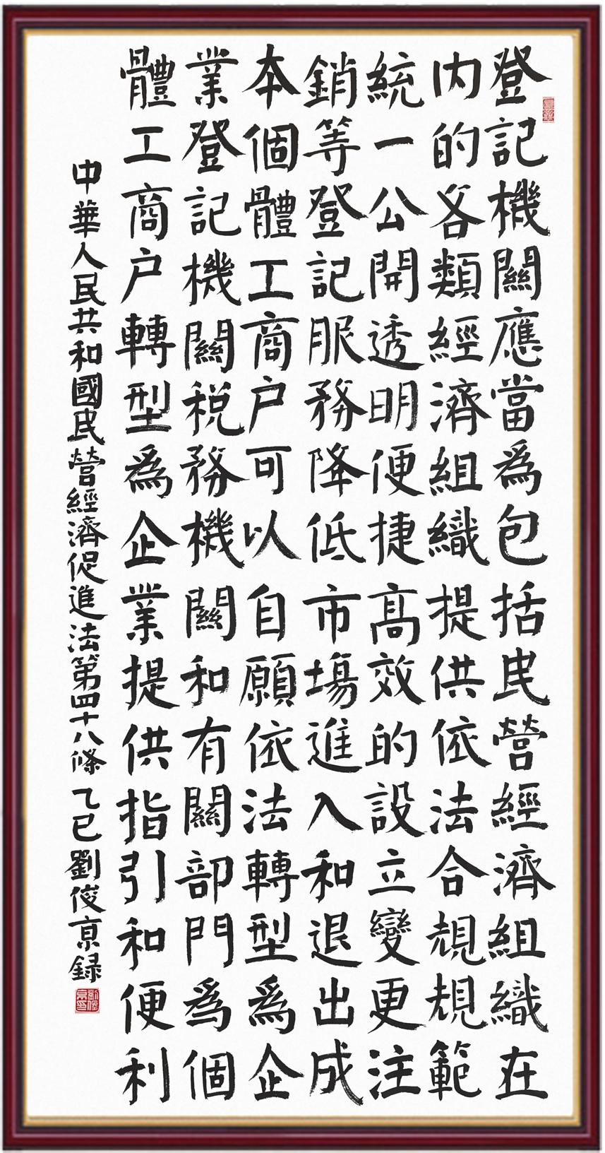 《中華人民共和國(guó)民營(yíng)經(jīng)濟(jì)促進(jìn)法》自今年5月20日起施行。作為我國(guó)首部專(zhuān)門(mén)關(guān)于民營(yíng)經(jīng)濟(jì)發(fā)展的基礎(chǔ)性法律,民營(yíng)經(jīng)濟(jì)促進(jìn)法將支持和保障民營(yíng)經(jīng)濟(jì)發(fā)展的法律制度融入中國(guó)特色社會(huì)主義法律體系,具有重大的法治意義,為促進(jìn)民營(yíng)經(jīng)濟(jì)持續(xù)、健康、高質(zhì)量發(fā)展提供了堅(jiān)實(shí)的法治保障。為更好地學(xué)習(xí)、宣傳、貫徹這部法律,法治日?qǐng)?bào)社聯(lián)合司法部普法與依法治理局,開(kāi)展“‘書(shū)·法’系列活動(dòng)之書(shū)寫(xiě)《中華人民共和國(guó)民營(yíng)經(jīng)濟(jì)促進(jìn)法》”活動(dòng)。