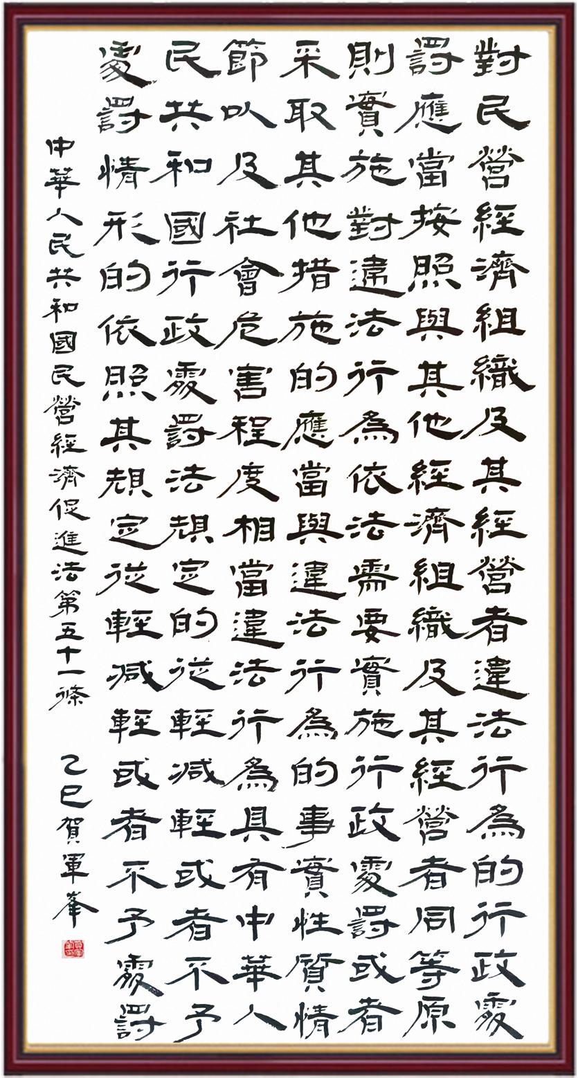 《中華人民共和國民營經濟促進法》自今年5月20日起施行。作為我國首部專門關于民營經濟發(fā)展的基礎性法律,民營經濟促進法將支持和保障民營經濟發(fā)展的法律制度融入中國特色社會主義法律體系,具有重大的法治意義,為促進民營經濟持續(xù)、健康、高質量發(fā)展提供了堅實的法治保障。為更好地學習、宣傳、貫徹這部法律,法治日報社聯(lián)合司法部普法與依法治理局,開展“‘書·法’系列活動之書寫《中華人民共和國民營經濟促進法》”活動。