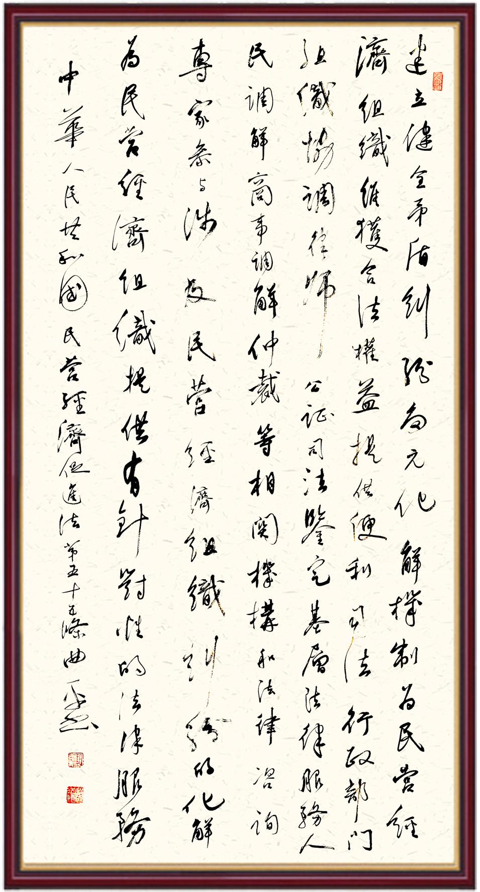 《中華人民共和國民營經(jīng)濟促進法》自今年5月20日起施行。作為我國首部專門關于民營經(jīng)濟發(fā)展的基礎性法律,民營經(jīng)濟促進法將支持和保障民營經(jīng)濟發(fā)展的法律制度融入中國特色社會主義法律體系,具有重大的法治意義,為促進民營經(jīng)濟持續(xù)、健康、高質(zhì)量發(fā)展提供了堅實的法治保障。為更好地學習、宣傳、貫徹這部法律,法治日報社聯(lián)合司法部普法與依法治理局,開展“‘書·法’系列活動之書寫《中華人民共和國民營經(jīng)濟促進法》”活動。