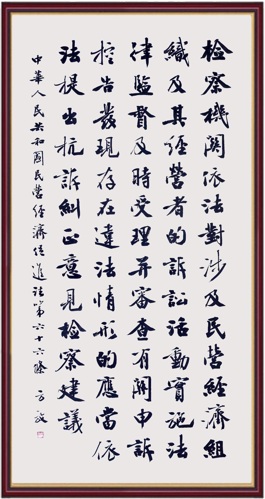 《中華人民共和國民營經(jīng)濟(jì)促進(jìn)法》自今年5月20日起施行。作為我國首部專門關(guān)于民營經(jīng)濟(jì)發(fā)展的基礎(chǔ)性法律,民營經(jīng)濟(jì)促進(jìn)法將支持和保障民營經(jīng)濟(jì)發(fā)展的法律制度融入中國特色社會(huì)主義法律體系,具有重大的法治意義,為促進(jìn)民營經(jīng)濟(jì)持續(xù)、健康、高質(zhì)量發(fā)展提供了堅(jiān)實(shí)的法治保障。為更好地學(xué)習(xí)、宣傳、貫徹這部法律,法治日?qǐng)?bào)社聯(lián)合司法部普法與依法治理局,開展“‘書·法’系列活動(dòng)之書寫《中華人民共和國民營經(jīng)濟(jì)促進(jìn)法》”活動(dòng)。