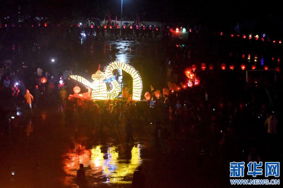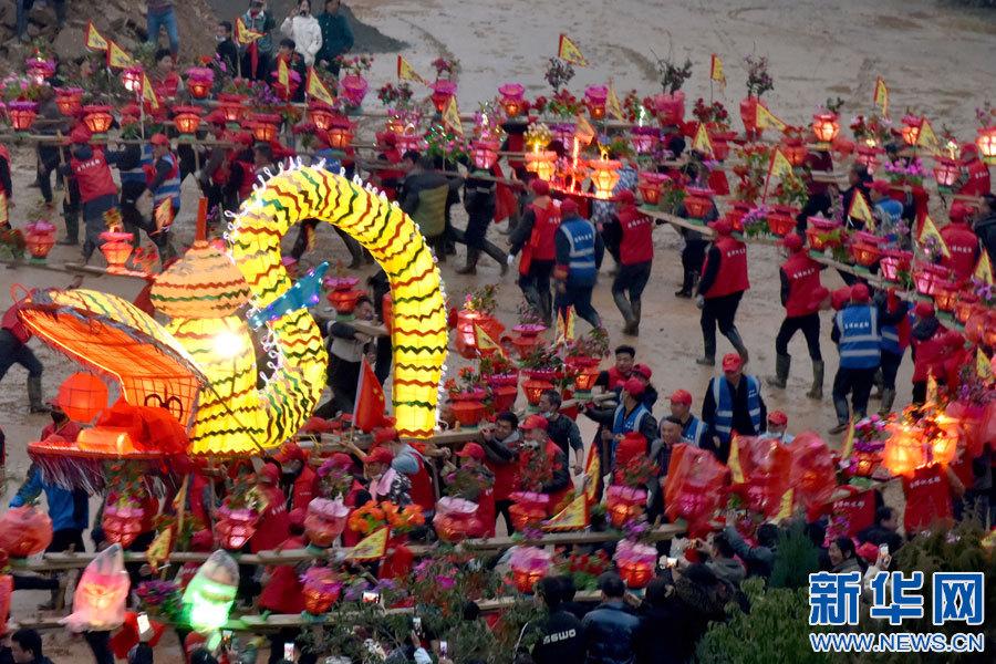 2月4日,在江西景德鎮(zhèn)市樂平市禮林鎮(zhèn)洄田村,當(dāng)?shù)財?shù)千名群眾舞動千米“巨龍”板橋龍燈,吸引數(shù)萬名市民和游人前來同賞龍燈,共慶元宵佳節(jié)。(譚茜予)