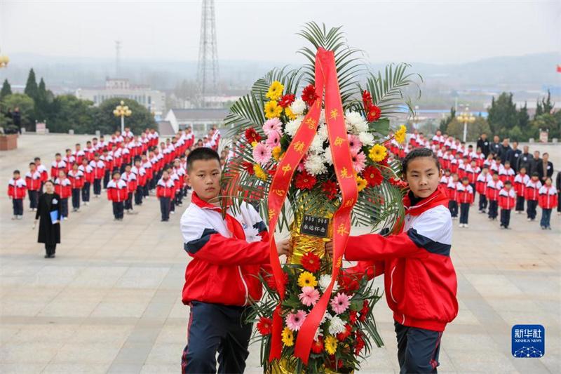 3月30日,學(xué)生在皖東烈士陵園祭奠先烈(無(wú)人機(jī)照片)。