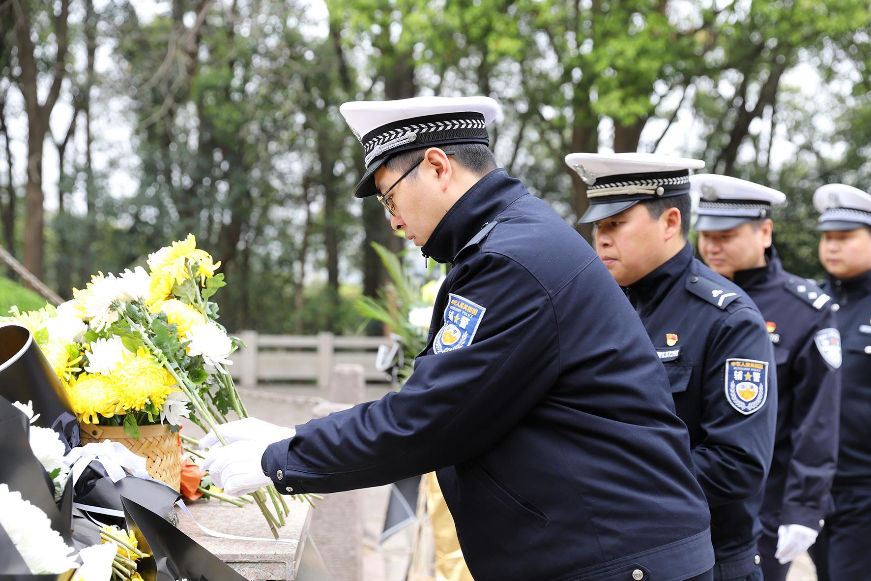 3月31日,安徽省蕪湖市公安局交警支隊弋江大隊組織民警輔警前往蕪湖市烈士陵園,開展“緬懷革命先烈 鑄牢忠誠警魂”清明祭掃英烈活動。