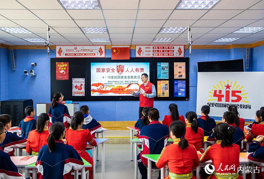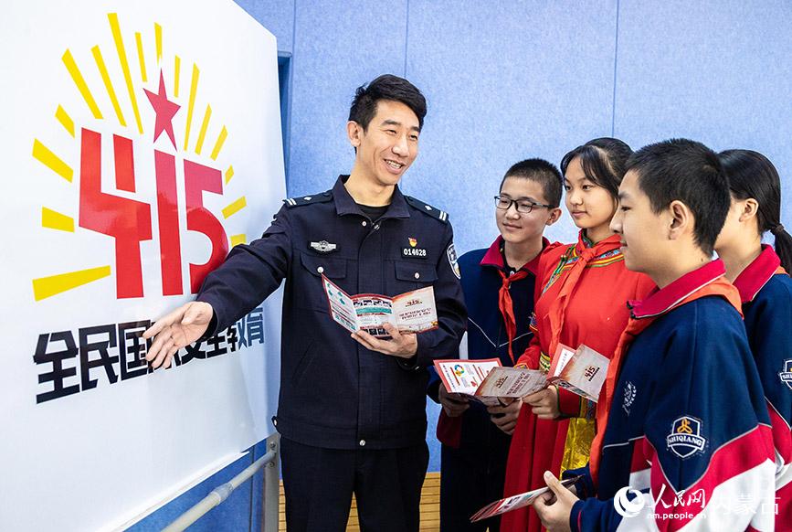 4月12日,呼和浩特市玉泉區(qū)公安分局警支大隊(duì)民警向?qū)W生宣講國家安全相關(guān)法律法規(guī)知識(shí)。丁根厚 攝