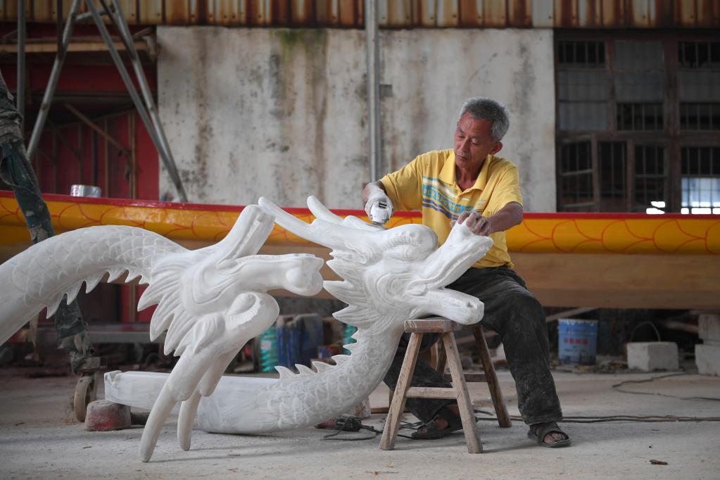 今年65歲的許桂生,出生于“龍舟世家”,在傳承傳統(tǒng)制造技藝的基礎(chǔ)上,他敏銳捕捉市場需求,不斷推陳出新。“隨著龍舟運動的推廣,‘南舟北移’的趨勢明顯,越來越多的北方群眾愛上了劃龍舟,我們研發(fā)的旱地龍舟受到了新疆等地客戶的追捧。”許桂生說。