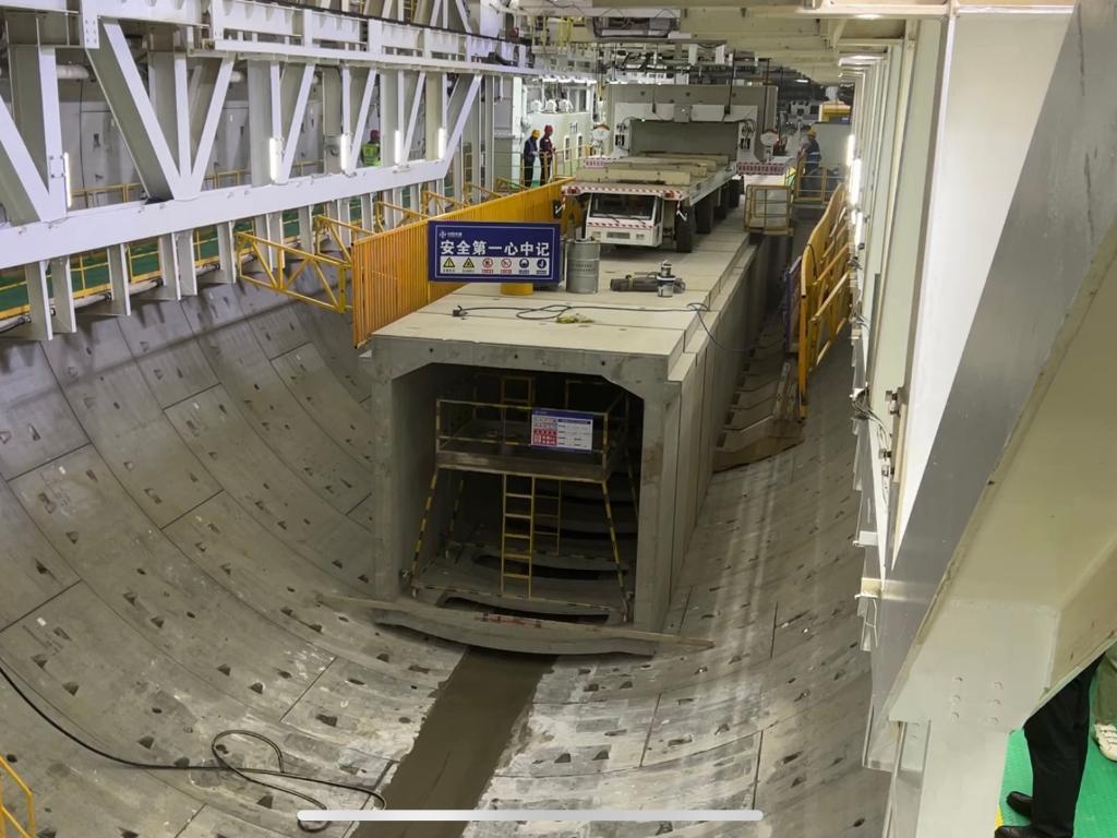 記者在挖掘現(xiàn)場(chǎng)看到,這里不見塵土飛揚(yáng),卻好似一組白色系的大型積木:隨著盾構(gòu)機(jī)向前推進(jìn),預(yù)制箱涵正在向前拼裝,形成隧道內(nèi)行車層的初期路面,圓弧形的盾構(gòu)管片也同步向前拼裝,組成隧道壁結(jié)構(gòu)。