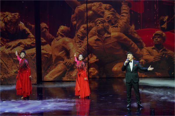 紅色紀(jì)念館講解員吳麗麗(左)、王立志(中)、程珺喆(右)在講述《我愛你中國》