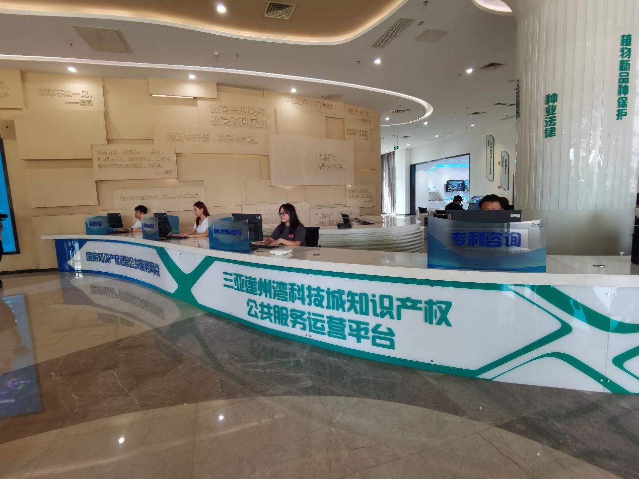 圖為三亞崖州灣科技城知識產(chǎn)權(quán)公共服務(wù)運(yùn)營平臺大廳