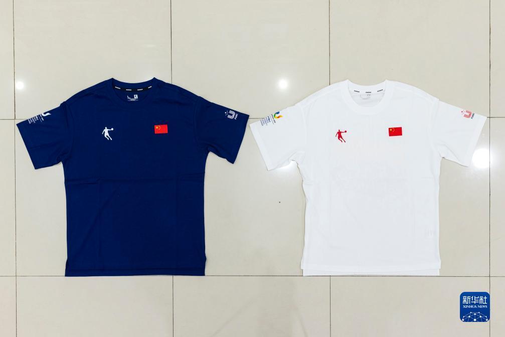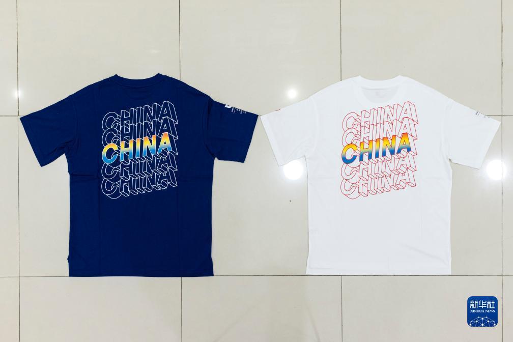 這是7月24日拍攝的第31屆世界大學(xué)生夏季運(yùn)動(dòng)會(huì)中國(guó)代表團(tuán)成員配發(fā)裝備中的短T恤衫。新華社記者 沈伯韓 攝
