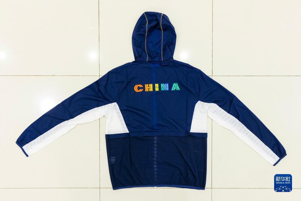 這是7月24日拍攝的第31屆世界大學(xué)生夏季運(yùn)動(dòng)會(huì)中國(guó)代表團(tuán)成員配發(fā)裝備中的梭織單層夾克。新華社記者 沈伯韓 攝