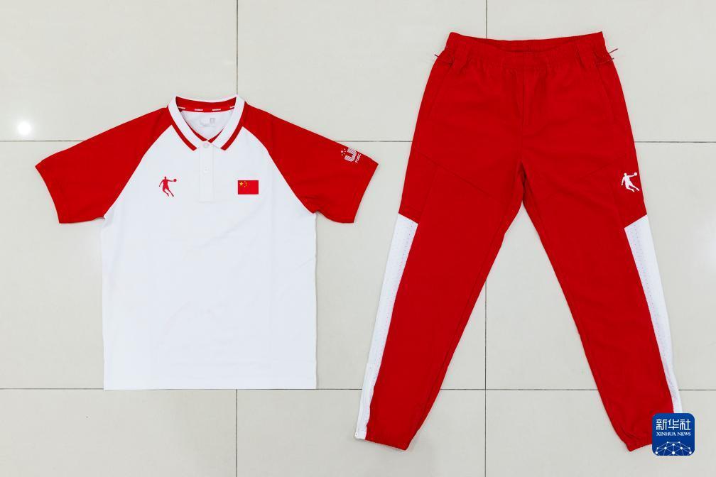 這是7月24日拍攝的第31屆世界大學(xué)生夏季運(yùn)動(dòng)會(huì)中國(guó)代表團(tuán)成員配發(fā)裝備中的POLO短T恤衫和長(zhǎng)褲。新華社記者 沈伯韓 攝