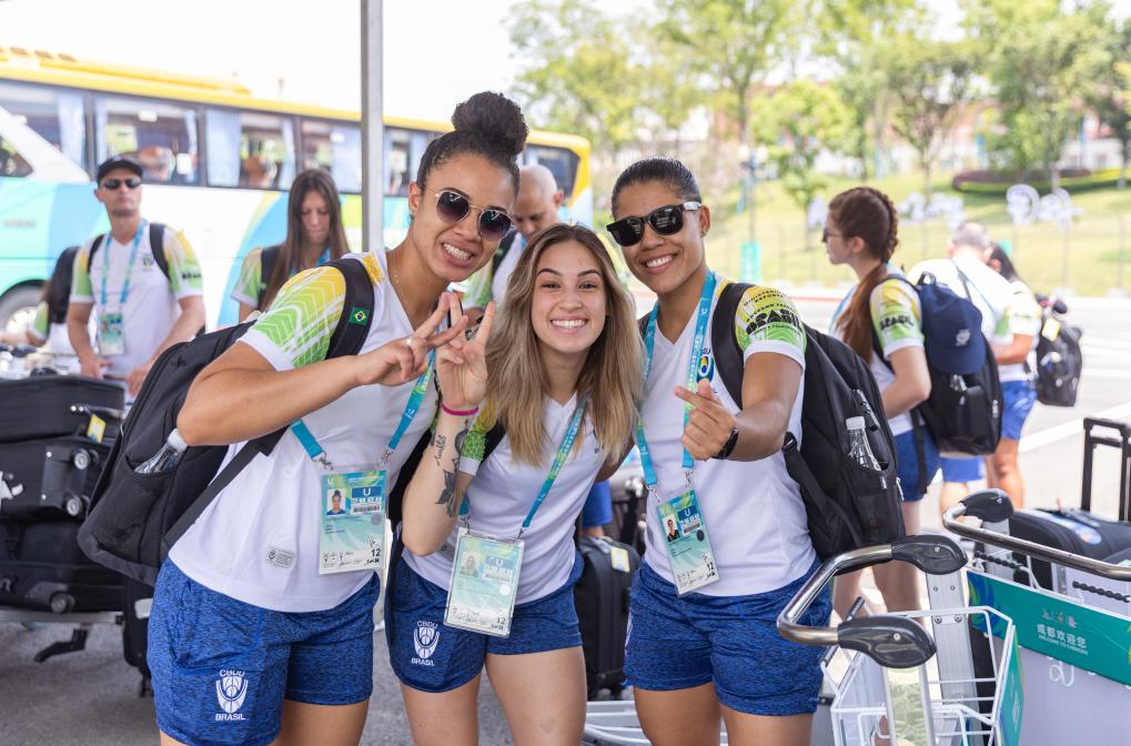 ↑7月22日,巴西代表團(tuán)成員抵達(dá)成都大運村后合影。
