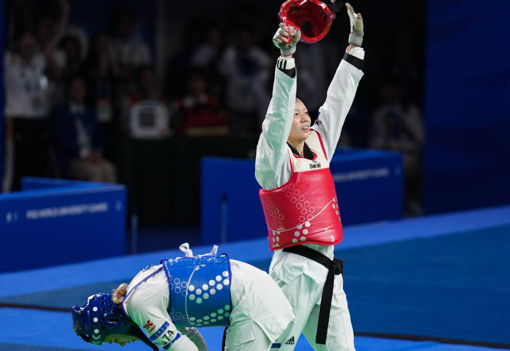 中國隊(duì)還在跆拳道項(xiàng)目上獲得兩枚金牌,宋潔逆轉(zhuǎn)奪得女子67公斤級冠軍,張凱則拿下男子80公斤級金牌。