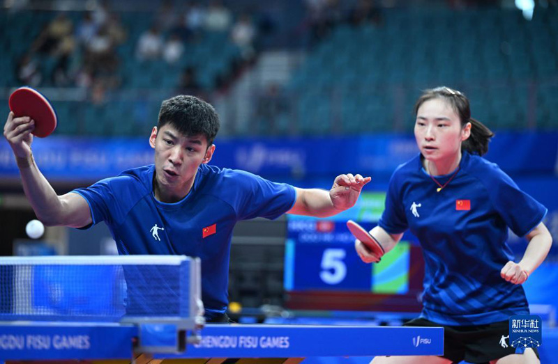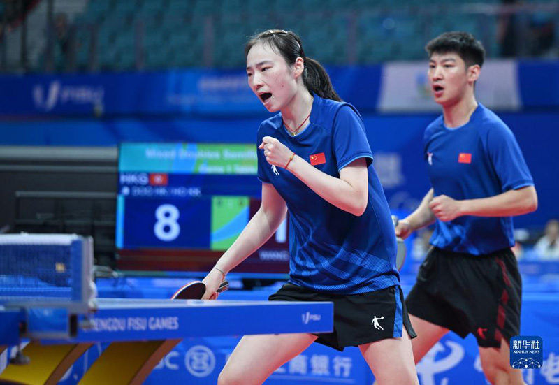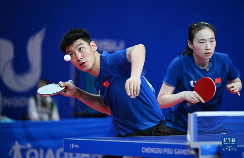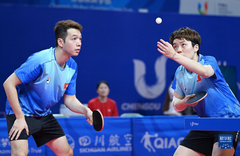當(dāng)日,在成都舉行的第31屆世界大學(xué)生夏季運(yùn)動(dòng)會(huì)乒乓球比賽混合雙打半決賽中,中國(guó)組合薛飛/王曉彤以4比0戰(zhàn)勝中國(guó)香港組合何鈞杰/杜凱琹,晉級(jí)決賽。