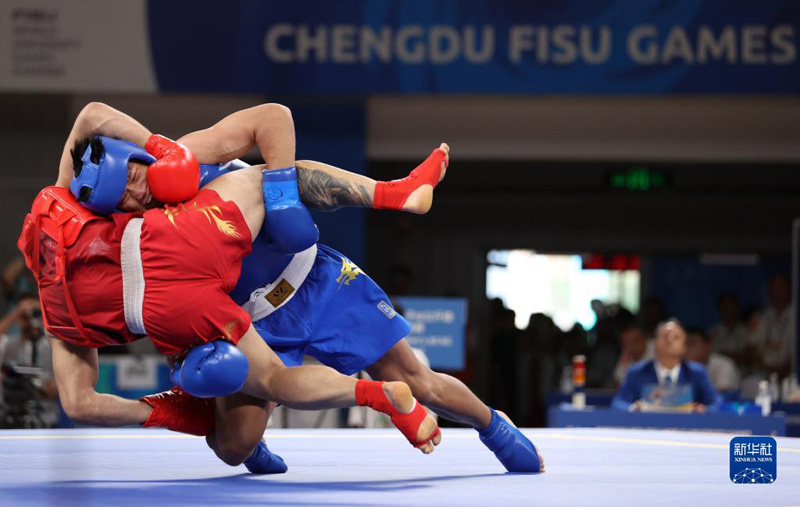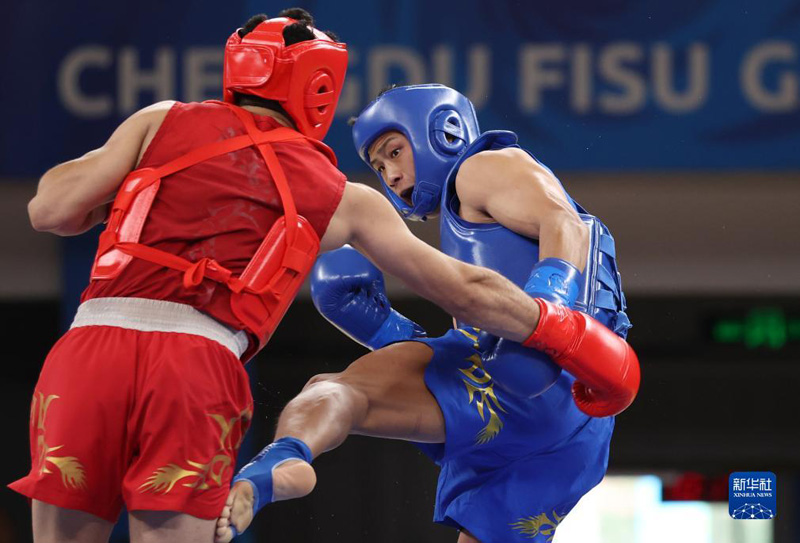 當日,在成都第31屆世界大學生夏季運動會武術散打男子80公斤級決賽中,中國選手柳文龍以2比0戰(zhàn)勝伊朗選手阿里,獲得冠軍。