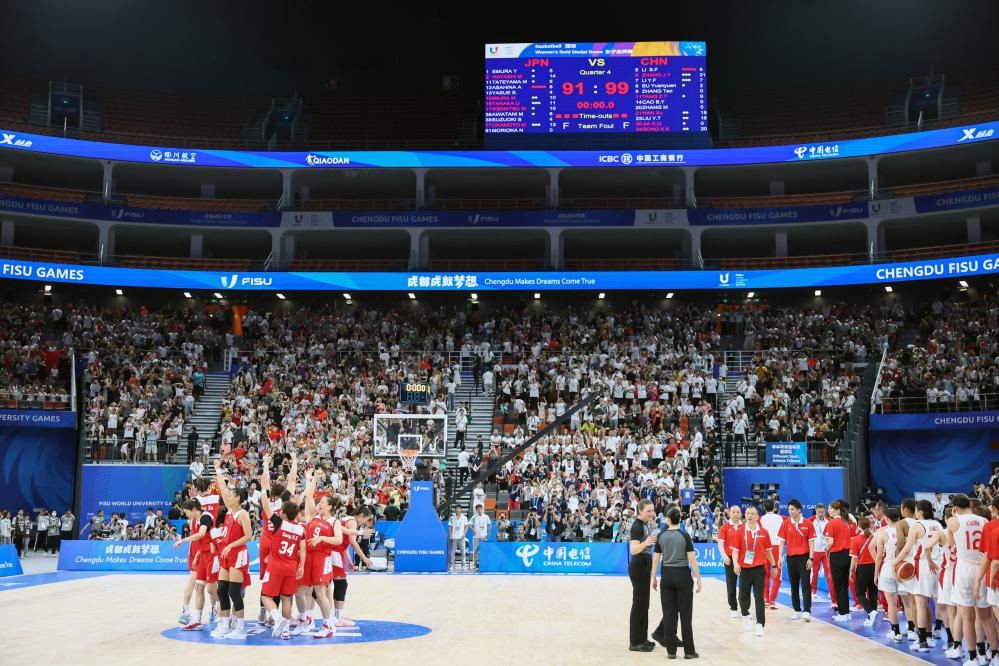 而仿佛要將場(chǎng)館頂棚掀翻的觀眾們的助威聲,也反過(guò)來(lái)給予中國(guó)隊(duì)姑娘們同樣的信心。作為參加過(guò)上屆大運(yùn)會(huì)的球員,宋珂昕曾在接受采訪時(shí)說(shuō),成都球迷熱情、賣(mài)力的助威聲是她們克服困難最好的動(dòng)力。