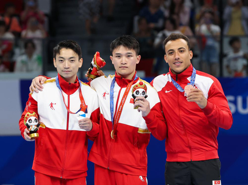 東京奧運(yùn)會(huì)銀牌得主、中國(guó)臺(tái)北選手李智凱收獲鞍馬金牌,實(shí)現(xiàn)大運(yùn)會(huì)鞍馬“三連冠”。“這是我的最后一屆世界大學(xué)生運(yùn)動(dòng)會(huì),能夠在這次把自己的難度分升到6.5分,對(duì)我來(lái)說(shuō)是一個(gè)突破與成長(zhǎng),很開心能完成這樣的目標(biāo)?!彼f(shuō)。