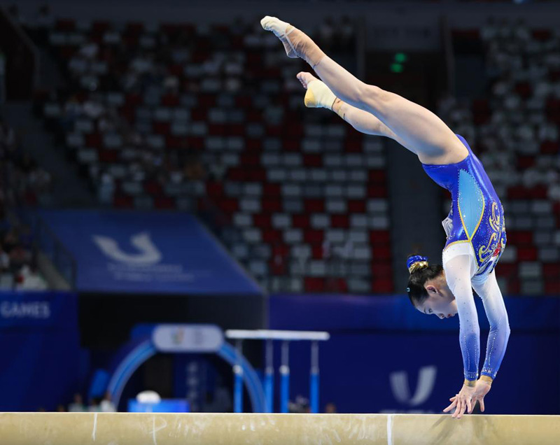 新華社成都8月5日電(記者譚暢、朱青)成都大運(yùn)會(huì)體操項(xiàng)目5日結(jié)束,在最后一個(gè)比賽日的單項(xiàng)對(duì)決中,中國(guó)隊(duì)選手奪得吊環(huán)、雙杠、高低杠、平衡木、女子自由體操金牌。其中,歐鈺珊拿到平衡木和女子自由體操冠軍,本屆賽事獨(dú)攬4枚金牌。5天賽程,中國(guó)隊(duì)共獲9枚金牌、5枚銀牌、1枚銅牌。