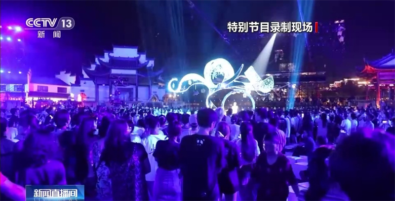 在錄制現(xiàn)場,由二十余個(gè)特色美食、非遺互動(dòng)、國潮手辦等攤位組成的國風(fēng)市集,讓現(xiàn)場觀眾沉浸體驗(yàn)七夕新奇民俗。