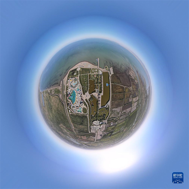 8月31日拍攝的新疆博斯騰湖大河口景區(qū)(無人機全景照片)。