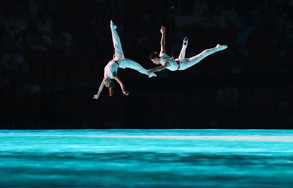 開幕式實現(xiàn)了兩個首創(chuàng):3D雙威亞首次應(yīng)用于大型運動場,首次采用“數(shù)實融合”的點火方式。