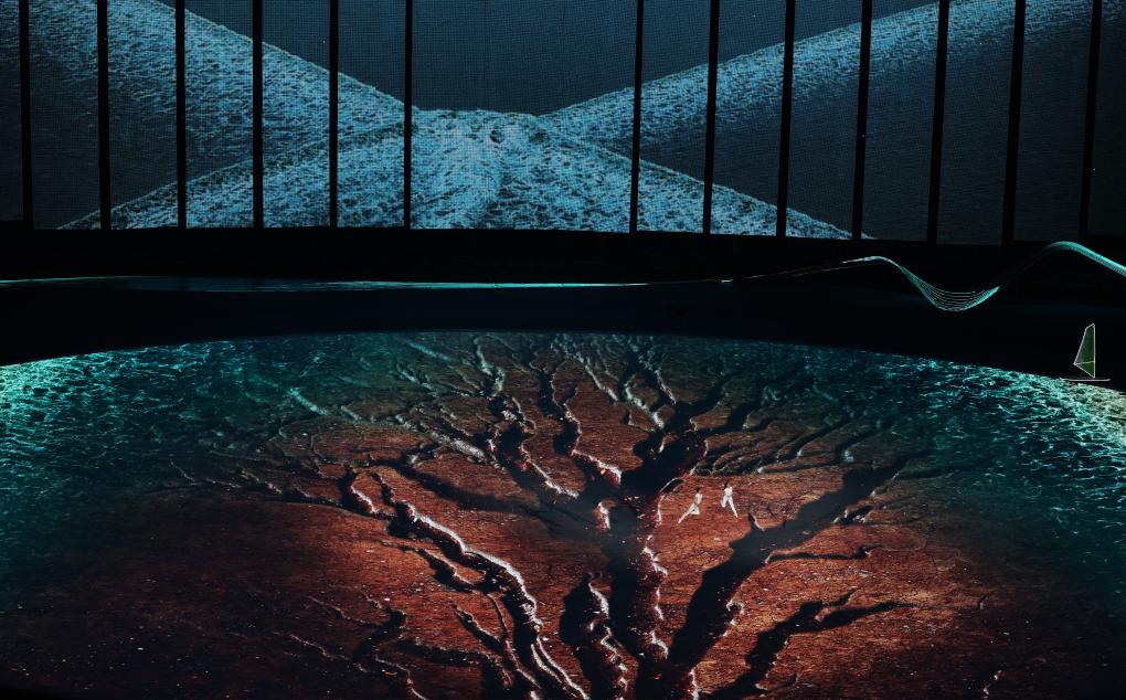 裸眼3D、AR數(shù)字穹頂、3D雙威亞、流體計算和185米寬、15米高的網(wǎng)幕等技術(shù),實現(xiàn)了立體美學和東方美學的融合,也實現(xiàn)了技術(shù)和藝術(shù)的雙向奔赴。