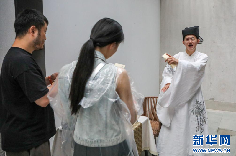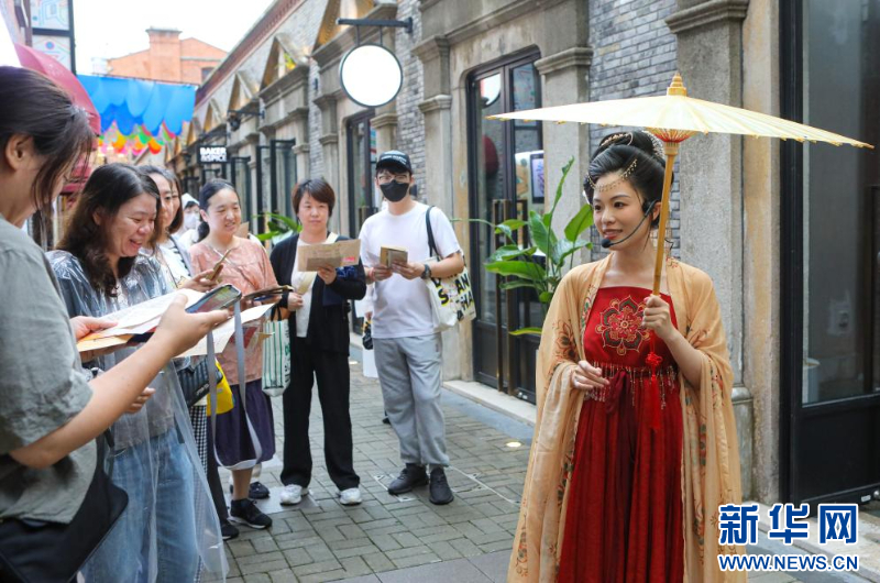 游客在今潮8弄體驗(yàn)原創(chuàng)沉浸式國風(fēng)劇情游戲《佳期如夢》。