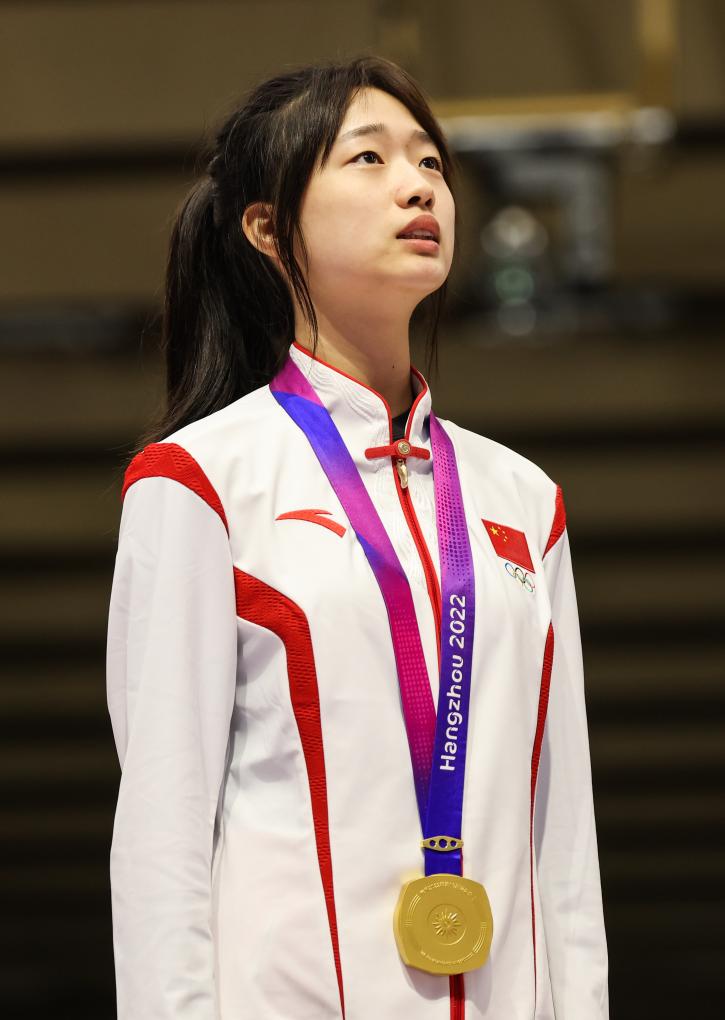 與“首金的雙手”同時登上熱搜的,還有“黃雨婷成亞運會首個雙冠王”。17歲的小姑娘在女子10米氣步槍比賽中連續(xù)奪得團體和個人兩枚金牌。黃雨婷賽后說,今天就是“放開手腳打好每一發(fā)”。人們從黃雨婷的“雙金”背后,看到了她精益求精的技術、處變不驚的心態(tài)和敢于爭先的信念。