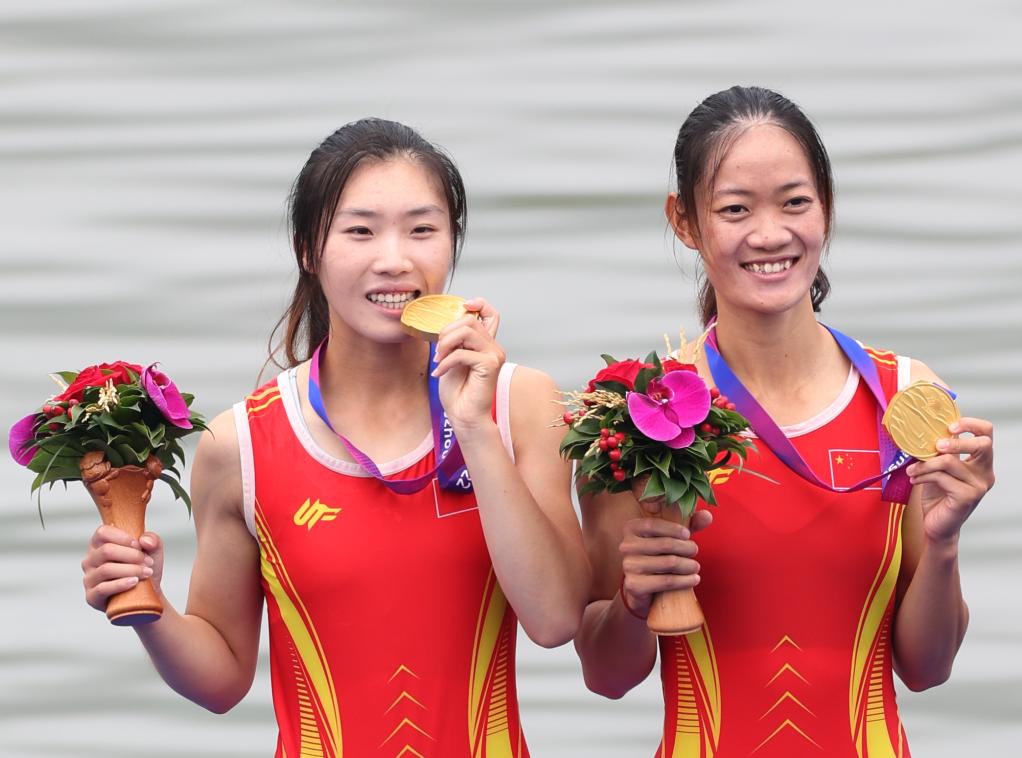9月24日,鄒佳琪(左)/邱秀萍在頒獎儀式上。新華社記者 杜瀟逸 攝
