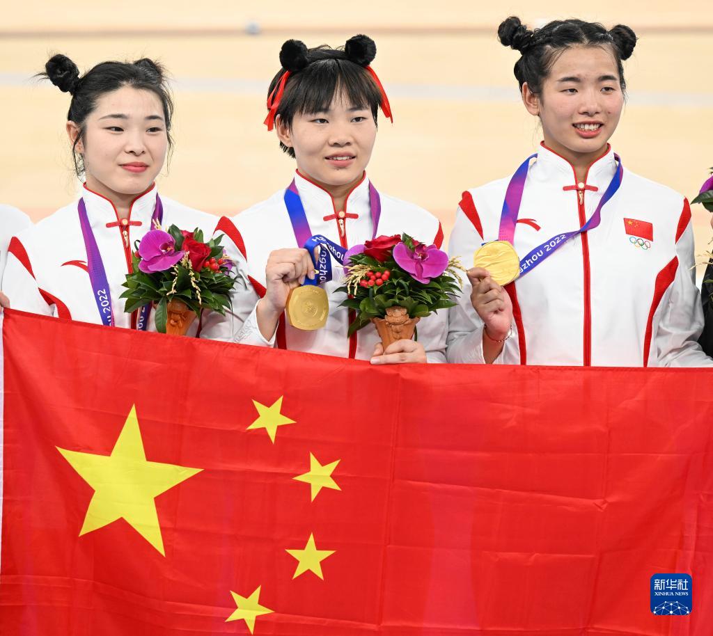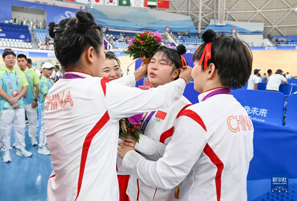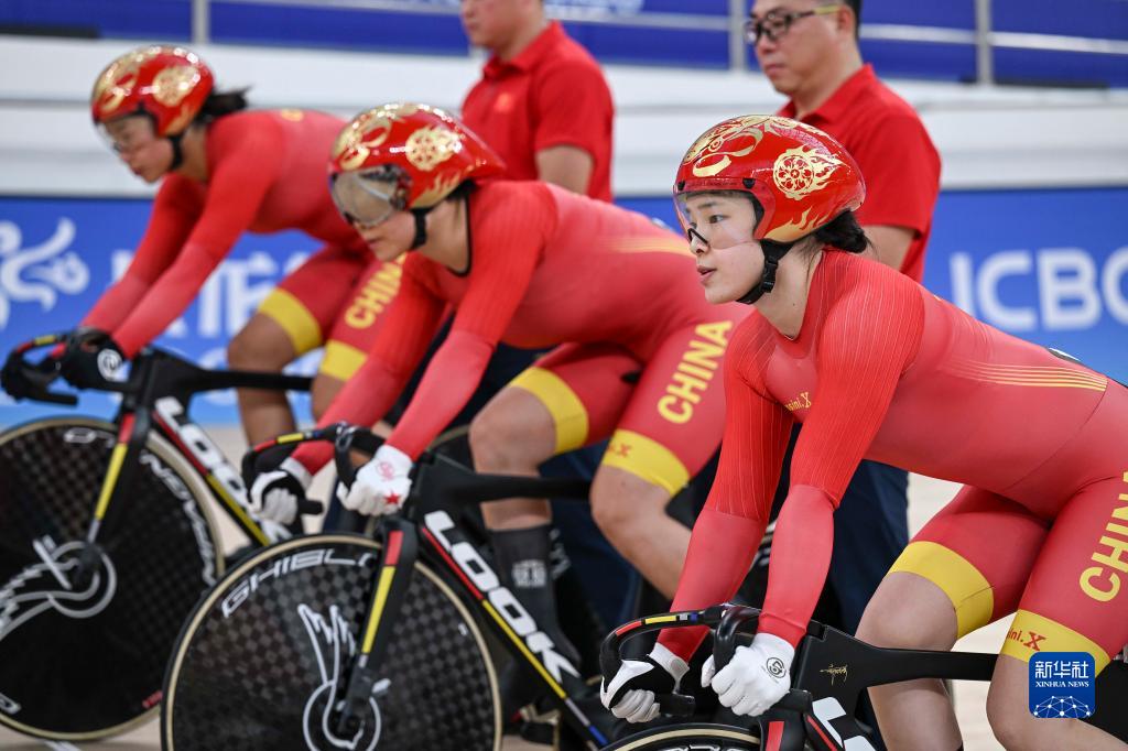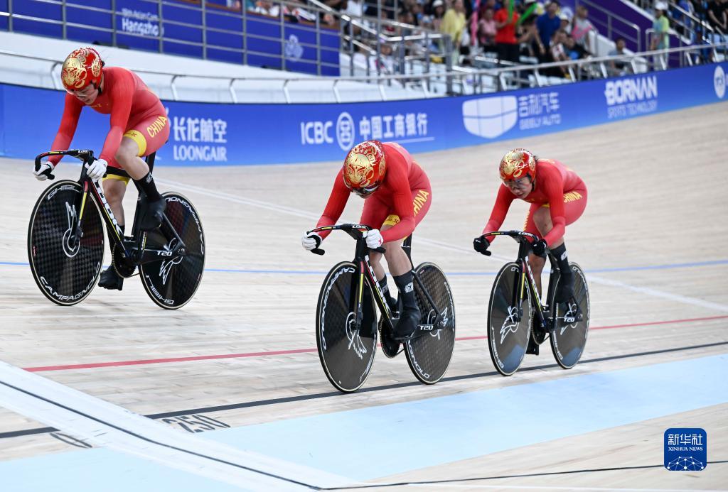 當(dāng)日,杭州亞運(yùn)會(huì)場(chǎng)地自行車女子團(tuán)體競(jìng)速賽在浙江杭州淳安界首體育中心自行車館舉行,中國(guó)隊(duì)以46秒376的成績(jī)獲得冠軍并打破該項(xiàng)目亞洲紀(jì)錄,韓國(guó)隊(duì)和馬來(lái)西亞隊(duì)分獲二、三名。