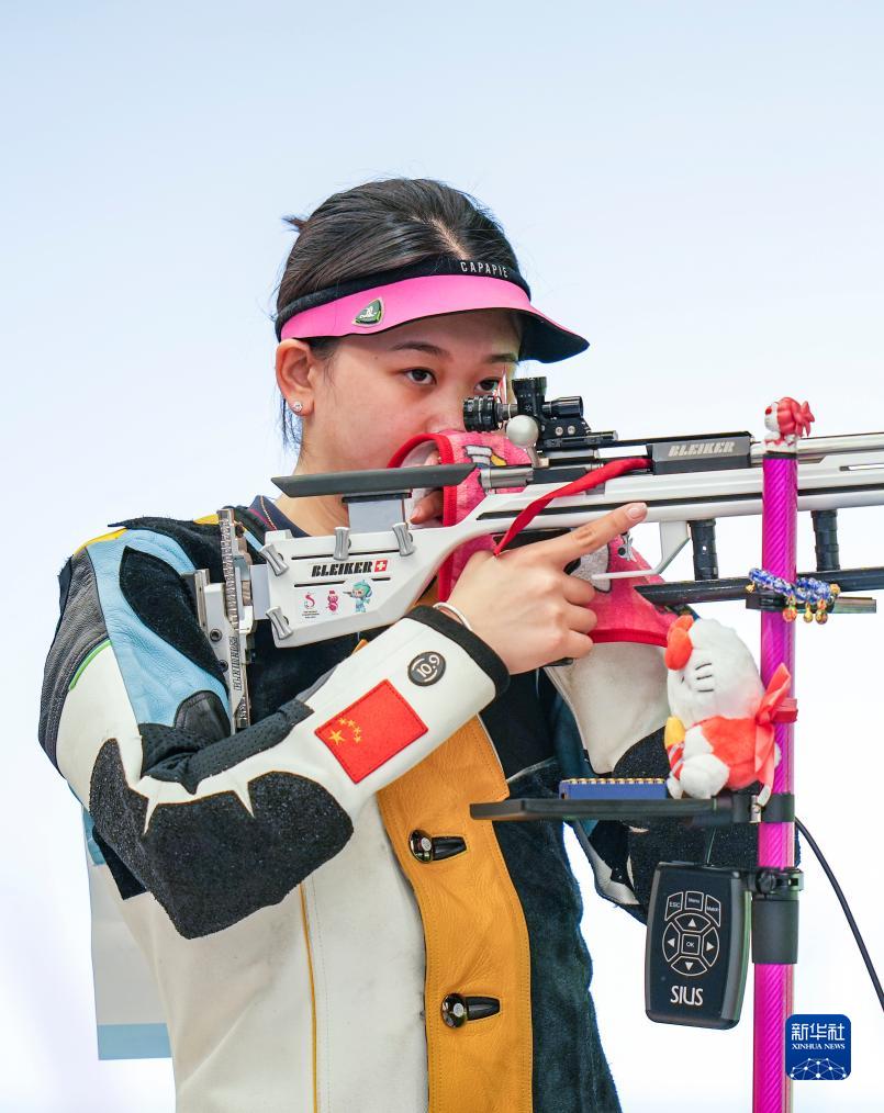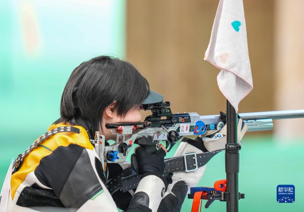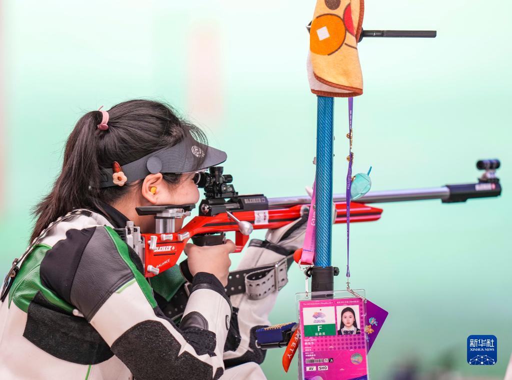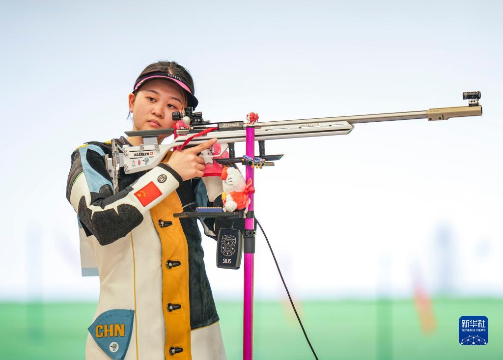 當(dāng)日,在浙江省杭州市富陽區(qū)富陽銀湖體育中心舉行的杭州亞運(yùn)會射擊女子50米步槍3種姿勢團(tuán)體賽決賽中,中國隊以總分1773分的成績?nèi)〉媒鹋疲《汝牶晚n國隊分獲銀牌、銅牌。