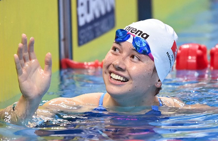 9月26日,中國香港名將何詩蓓以52秒17打破女子100米自由泳亞洲紀(jì)錄并奪冠,這也是她本屆賽事的第二枚金牌。