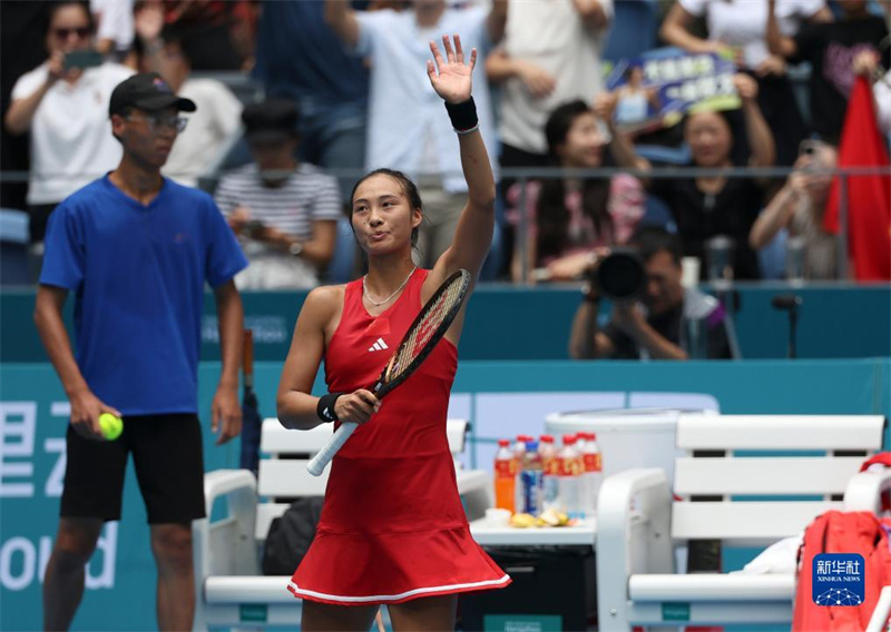 9月29日,鄭欽文在賽后向觀眾致意。