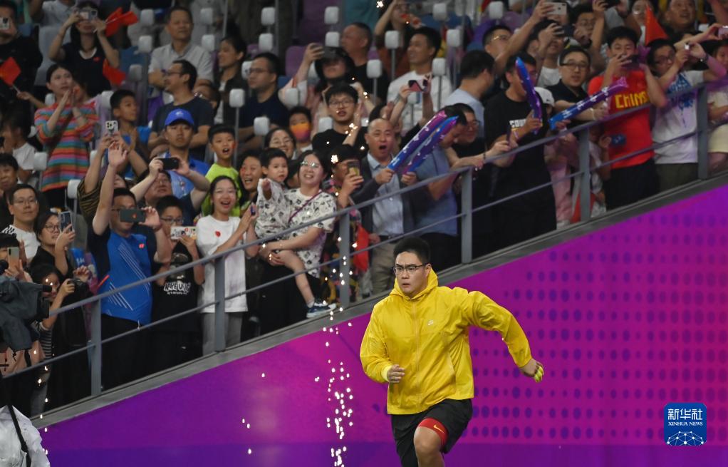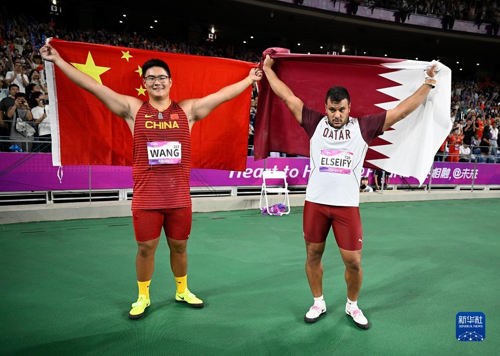 9月30日,中國選手王琦(左)和卡塔爾選手阿什拉夫·賽菲在比賽后慶祝。