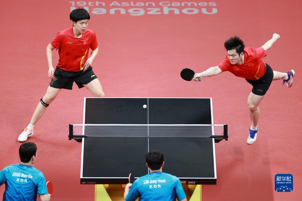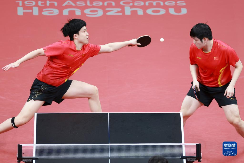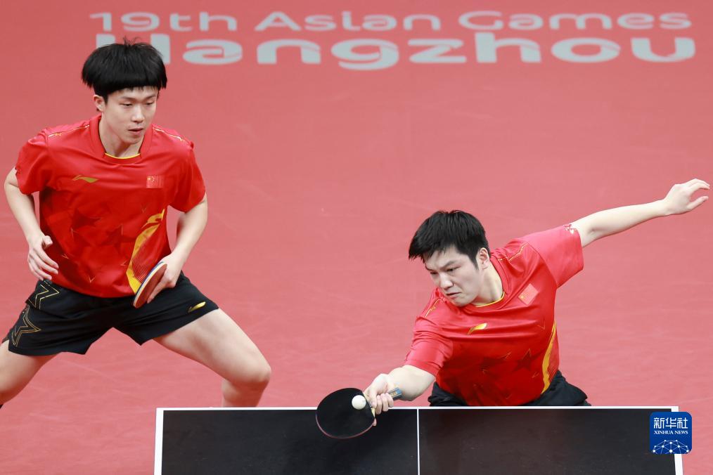 當(dāng)日,在杭州亞運會乒乓球項目男子雙打決賽中,中國組合樊振東/王楚欽以4比0戰(zhàn)勝韓國組合張禹珍/林鐘勛,獲得冠軍。