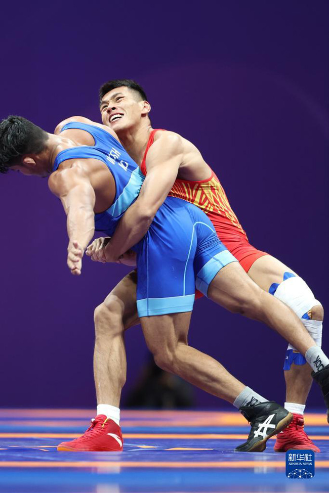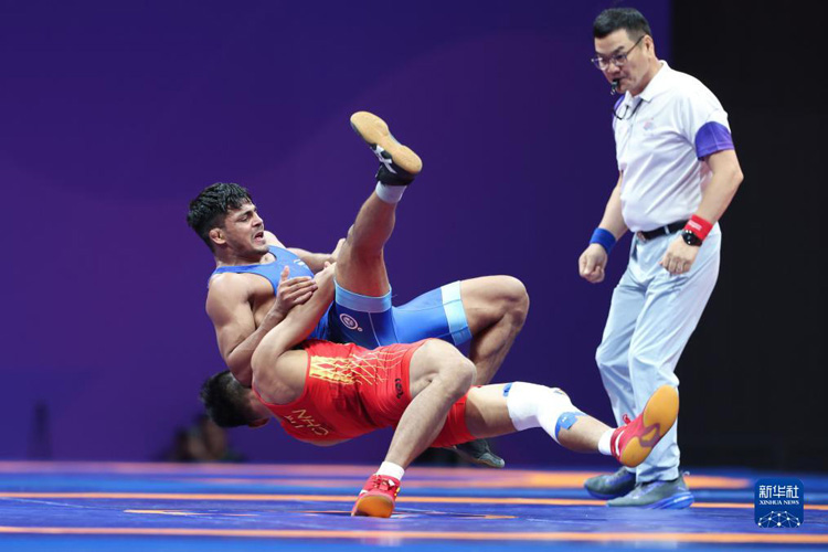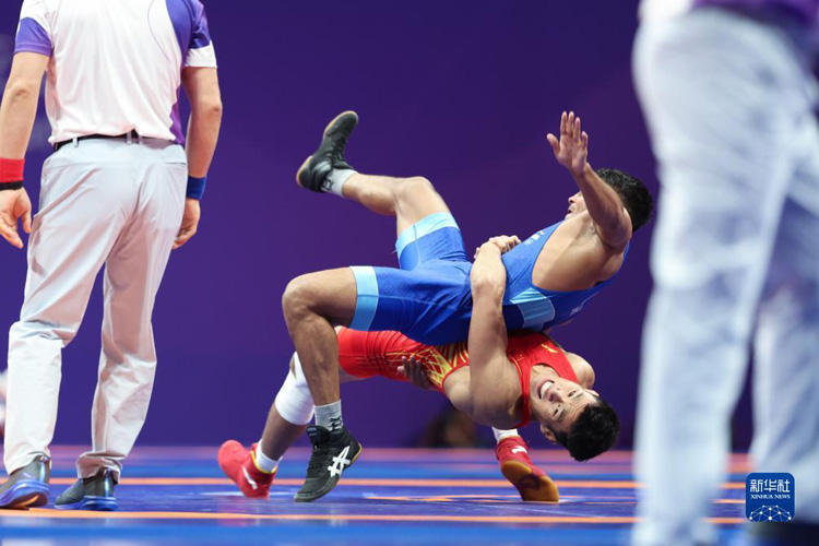當(dāng)日,在杭州亞運(yùn)會(huì)摔跤項(xiàng)目男子古典式77公斤級(jí)四分之一決賽中,中國(guó)選手劉瑞戰(zhàn)勝印度選手維卡斯,晉級(jí)半決賽。