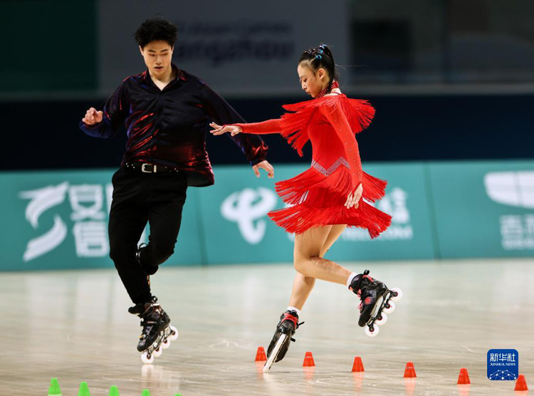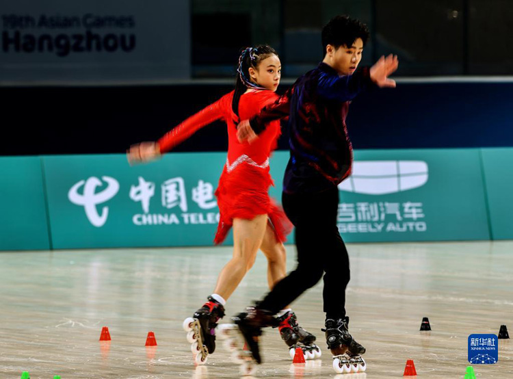 當(dāng)日,在杭州亞運會混合自由式輪滑男女雙人花式繞樁決賽中,中國組合張顥/朱思怡獲得冠軍。