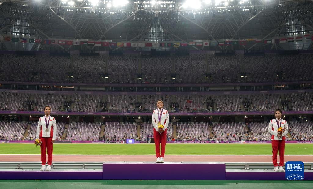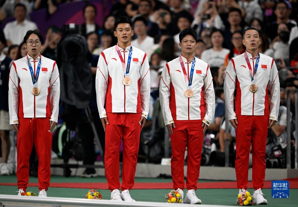 當晚,杭州亞運會田徑項目比賽結(jié)束后,中國奧委會在杭州奧體中心體育場舉行遞補奧運獎牌頒獎儀式,為遞補獲得東京奧運會男子4X100米接力銅牌的蘇炳添、謝震業(yè)、吳智強和湯星強與遞補獲得2012年倫敦奧運會女子20公里競走金、銀、銅牌的切陽什姐、劉虹、呂秀芝頒發(fā)獎牌。