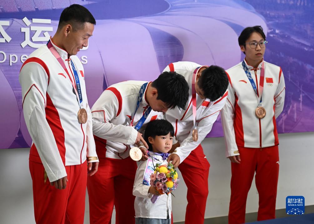 這是湯星強、謝震業(yè)、蘇炳添、吳智強遞補獲得的東京奧運會男子4X100米接力銅牌(10月4日攝)。