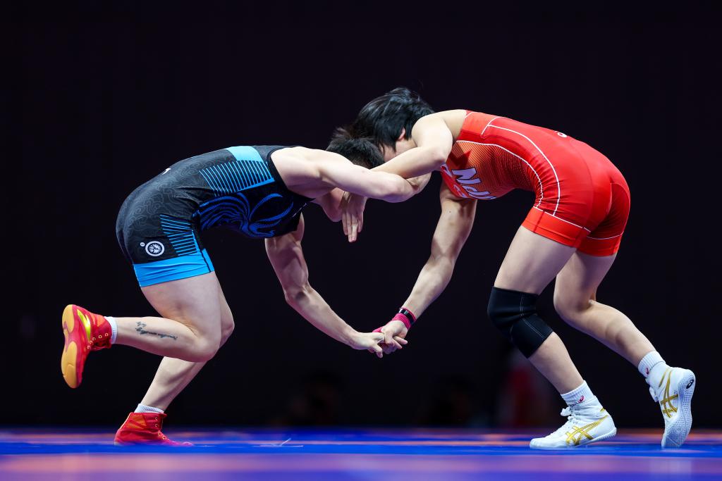 57公斤級比賽中,20歲的中國小將洪可新開局表現(xiàn)搶眼,接連兩場雙肩著地勝利先后速勝柬埔寨選手和哈薩克斯坦選手。但在半決賽她不敵4年未在國際賽場現(xiàn)身的朝鮮選手鄭忍純,之后在銅牌爭奪賽以技術(shù)優(yōu)勢擊敗了蒙古國選手達瓦奇梅格。2022年世錦賽該級別冠軍、日本選手櫻井津久美在決賽中上演大逆轉(zhuǎn)戰(zhàn)勝鄭忍純奪金。