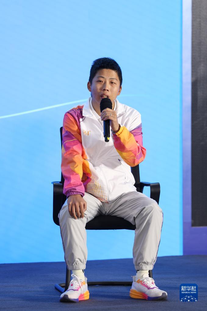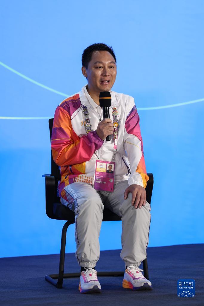 10月7日,中國(guó)日?qǐng)?bào)文教體育部、杭州亞運(yùn)英文官方會(huì)刊記者石甫天在見面會(huì)現(xiàn)場(chǎng)發(fā)言。