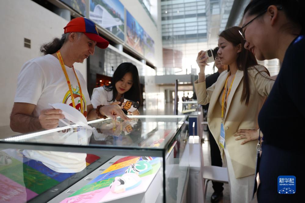 10月16日,參會記者在“一帶一路”國際合作高峰論壇新聞中心參觀展示的中國非物質(zhì)文化遺產(chǎn)展品。