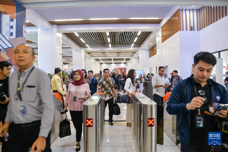 10月17日,在印度尼西亞萬(wàn)隆德卡魯爾站,乘客刷票出站。新華社記者 徐欽 攝