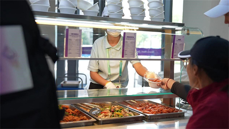 加寬加深的輪椅區(qū)、降低高度的取餐臺(tái)、滿員在崗的志愿者和服務(wù)人員……餐廳處處都是暖心細(xì)節(jié)。